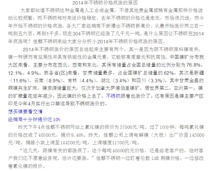 是什么原因讓不銹鋼在2014 年瘋漲呢?