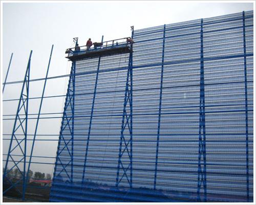 露天存放的各種儲煤場、礦石、石灰堆放等散流物料在遇到三級以上大風(fēng)天氣時經(jīng)常粉塵滿天,給周圍大氣環(huán)境造成嚴重污染。目前實施的“藍天工程”為集中解決煤堆、灰堆、料堆等堆放散流體物料揚塵污染擾民問題提出了嚴格的要求。我國目前主要采取控制堆放場揚塵的技術(shù)措施是:表面覆蓋、噴淋技術(shù)和擋風(fēng)抑塵技術(shù)。前兩種措施均需反復(fù)投資,并且效果不佳,噴淋技術(shù)還存在冬季結(jié)殼問題。而擋風(fēng)抑塵技術(shù)可有效解決上述問題。不僅效果良好,外觀漂亮,且一次投資多年受益。是目前解決散流物料揚塵污染的最佳措施。